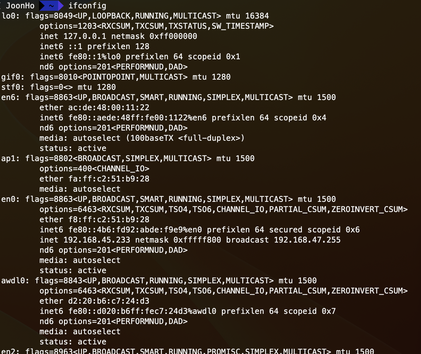 ifconfig [interface_name] 을 통해서 해당되는 인터페이스의 정보만 보는 것이 가능하다.